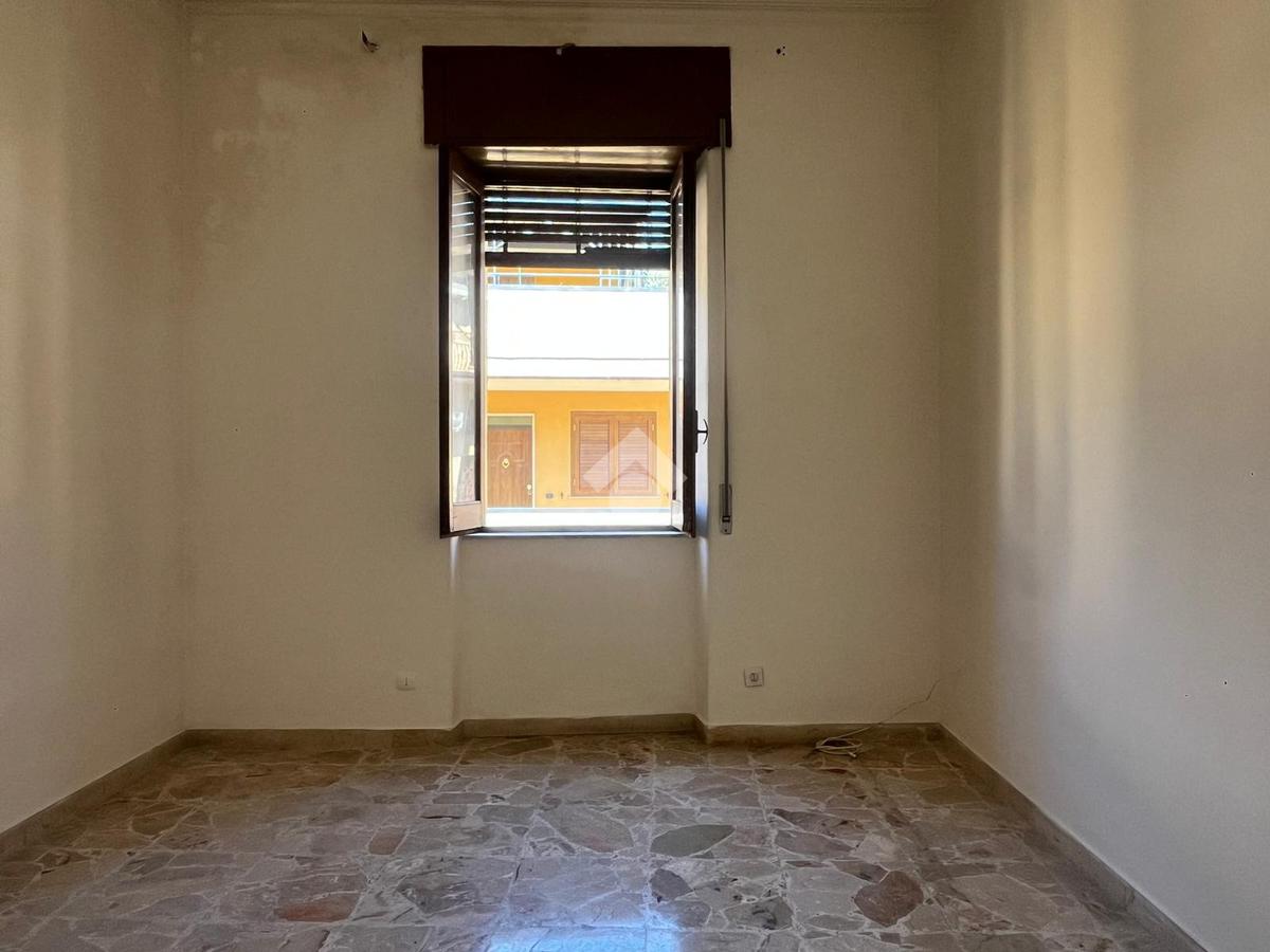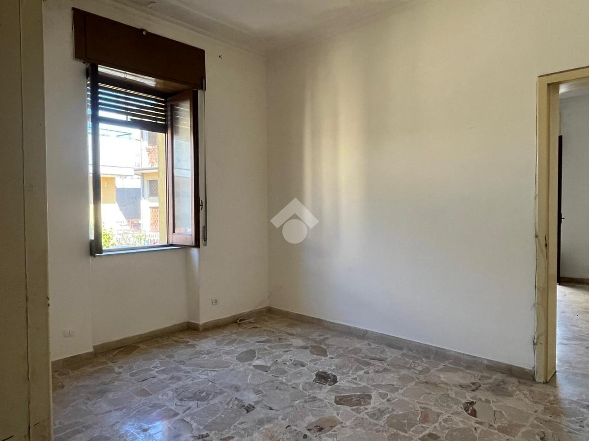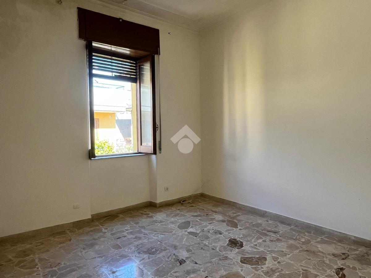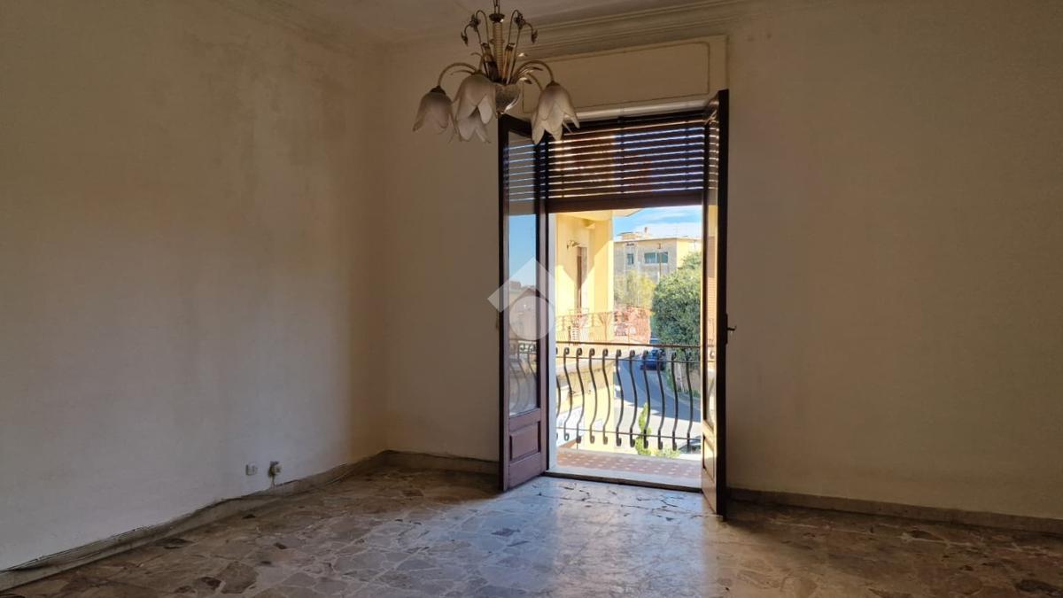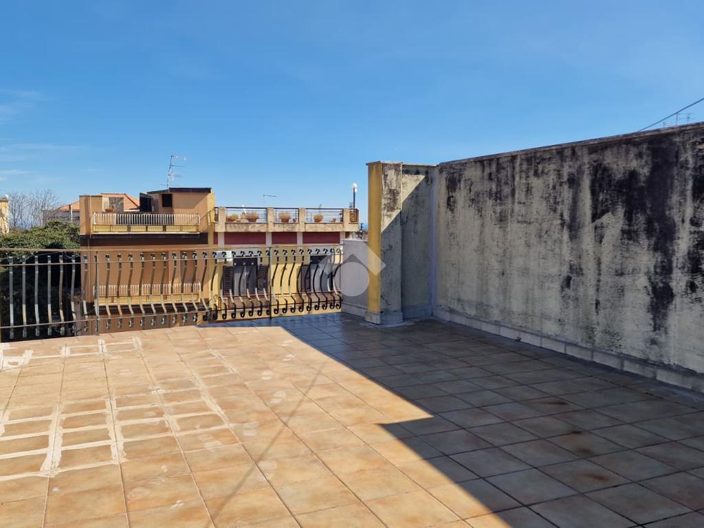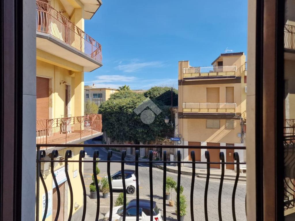 L'immobile: semindipendente al primo piano di un palazzetto edificato nel 1960 con bottega al piano terra. Ingresso con scala interna privata di accesso all'immobile ed al terrazzo sovrastante. L'ingresso è su disimpegno, due i vani in sequenza con angolo cottura ed il bagno a completare gli spazi interni di casa. Da una delle camere si ha uscita sul balcone con affaccio direttamente sulla piazza. Sovrastante la casa, il terrazzo di mq 41 con vista panoramica sull'Etna. Le condizioni son da ristrutturare, da rifare gli impianti elettrico ed idrico, riscaldamento assente ed infissi in legno monovetro. Da rifare il terrazzo sovrastante.
