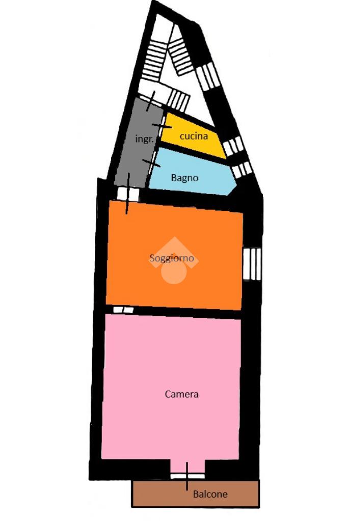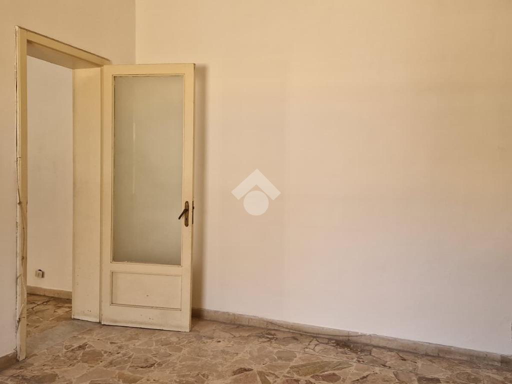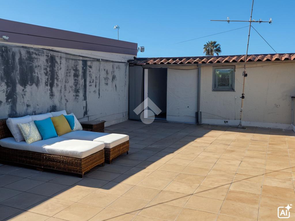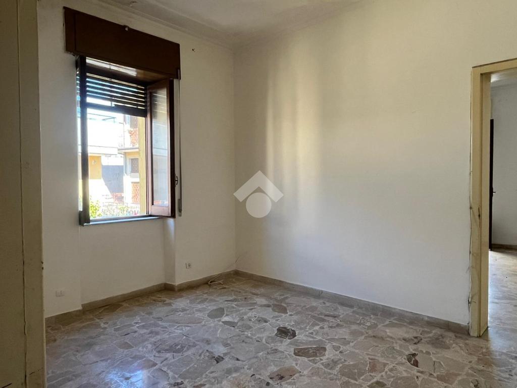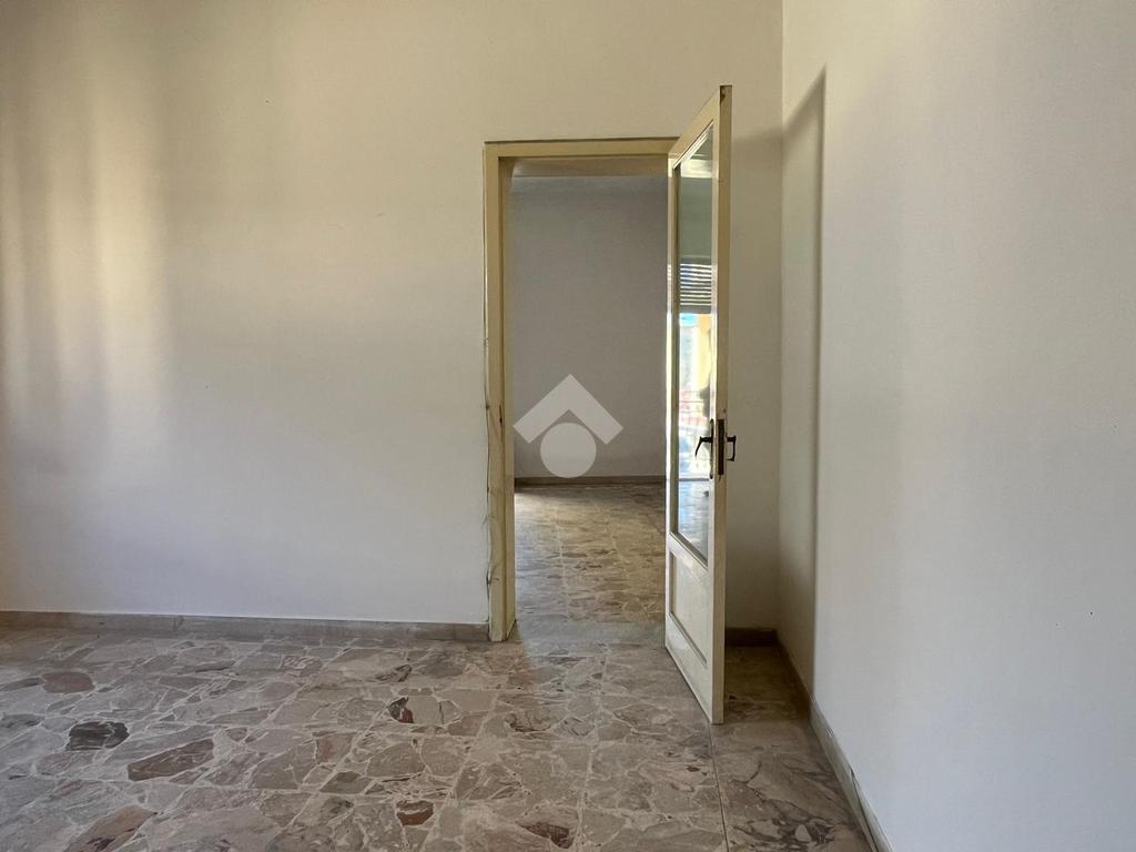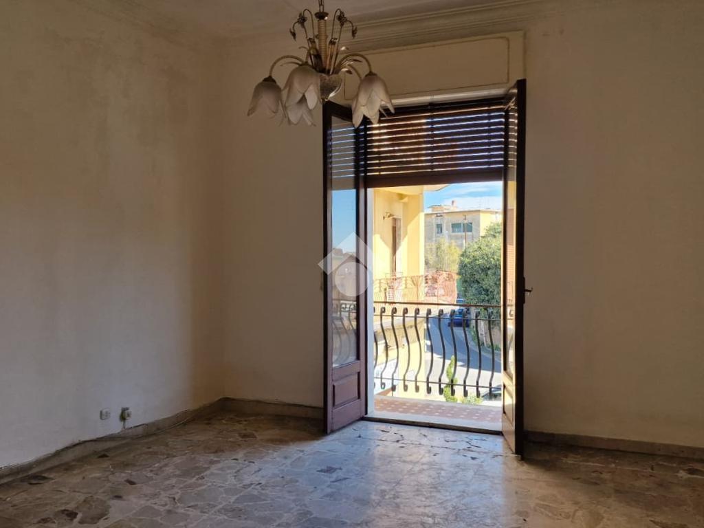 L'immobile: semindipendente al primo piano di un palazzetto edificato nel 1960 con bottega al piano terra. Ingresso con scala interna privata di accesso all'immobile ed al terrazzo sovrastante. L'ingresso è su disimpegno, due i vani in sequenza con angolo cottura ed il bagno a completare gli spazi interni di casa. Da una delle camere si ha uscita sul balcone con affaccio direttamente sulla piazza. Sovrastante la casa, il terrazzo di mq 41 con vista panoramica sull'Etna. Le condizioni son da ristrutturare, da rifare gli impianti elettrico ed idrico, riscaldamento assente ed infissi in legno monovetro. Da rifare il terrazzo sovrastante.