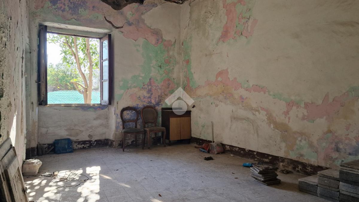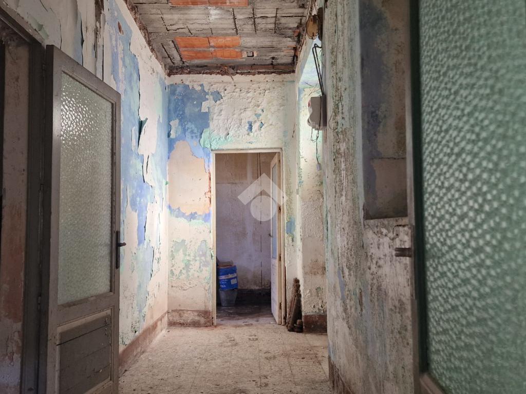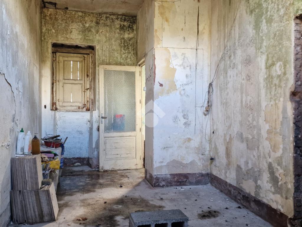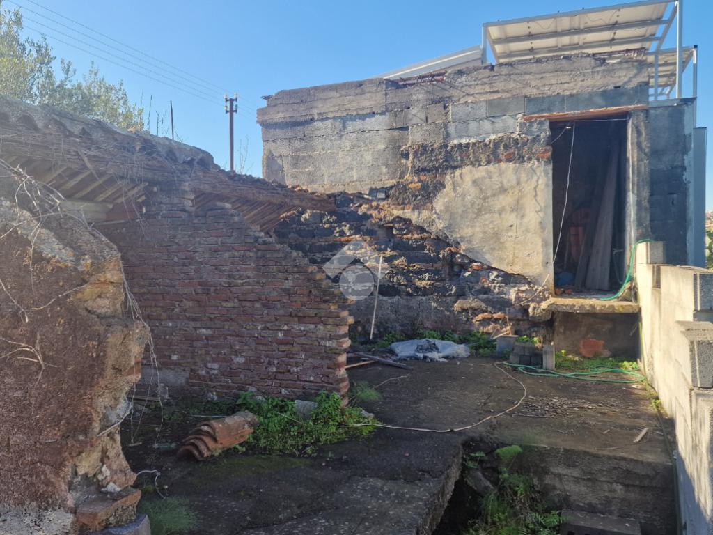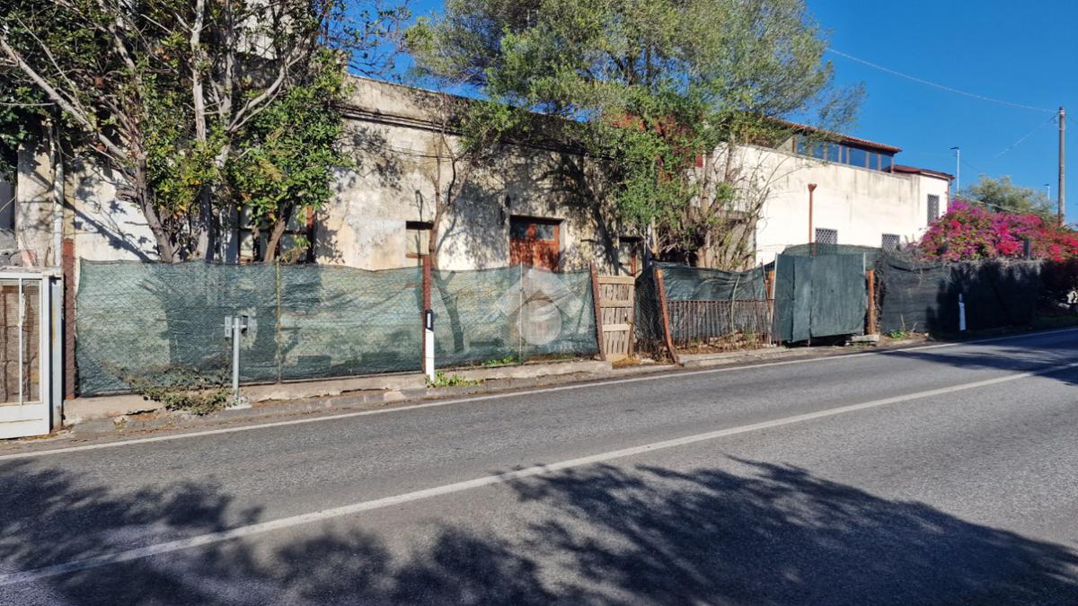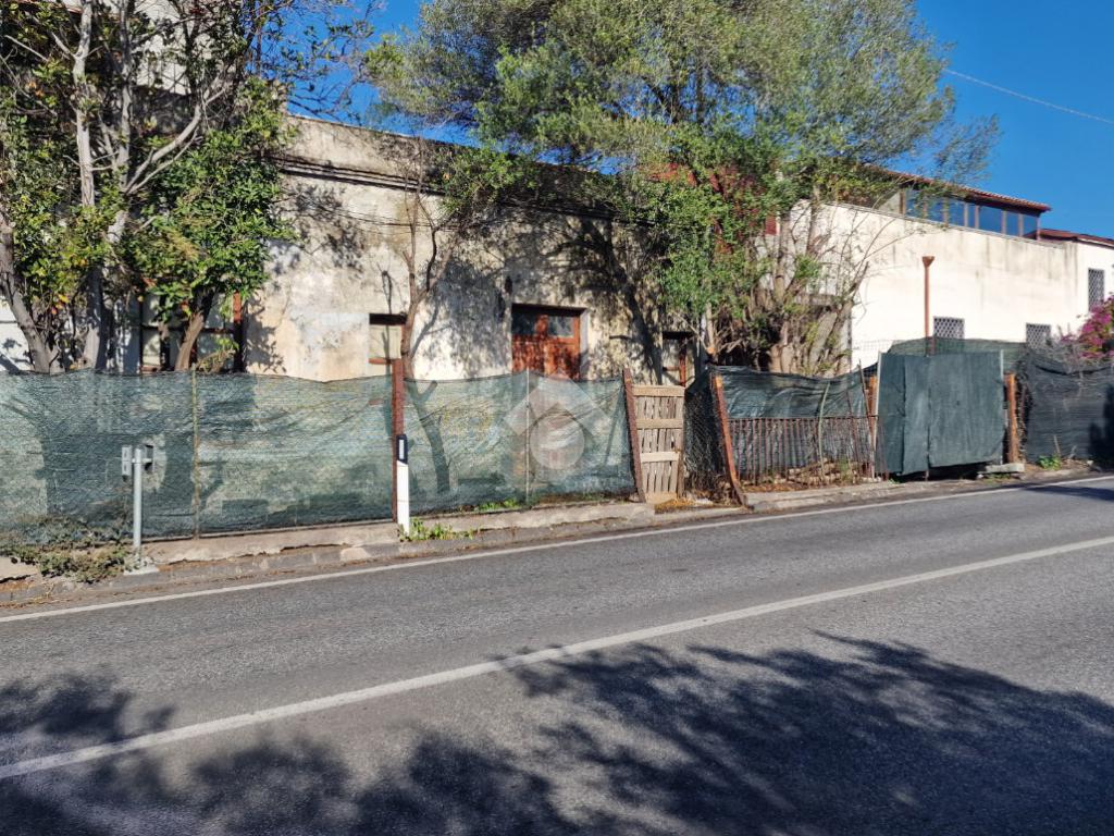 L'immobile: indipendente al piano terra edificata in data antecedente al 1967. L'ingresso è su cortile con possibilità di accesso carrabile con cancello da ricreare. Da questo si ha accesso all'interno di casa, interamente da ristrutturare, attualmente suddivisa con cucina soggiorno, due ulteriori ambienti ed il bagno. Sovrastante casa, la copertura a terrazza di mq 66 raggiungibile tramite scala ubicata in cortile con un ulteriore ambiente di mq 22 al piano primo accessibile dal terrazzo. Da ristrutturare interamente l'immobile, sia negli spazi interni che esterni. Da fare interamente gli impianti di acqua e luce, così come gli infissi in legno monovetro. Da rifare il terrazzo e le facciate. Da creare il muro di confine con la strada Nazionale di accesso all'immobile, attualmente delimitato con rete di confine.