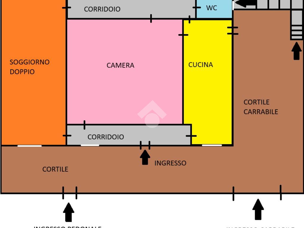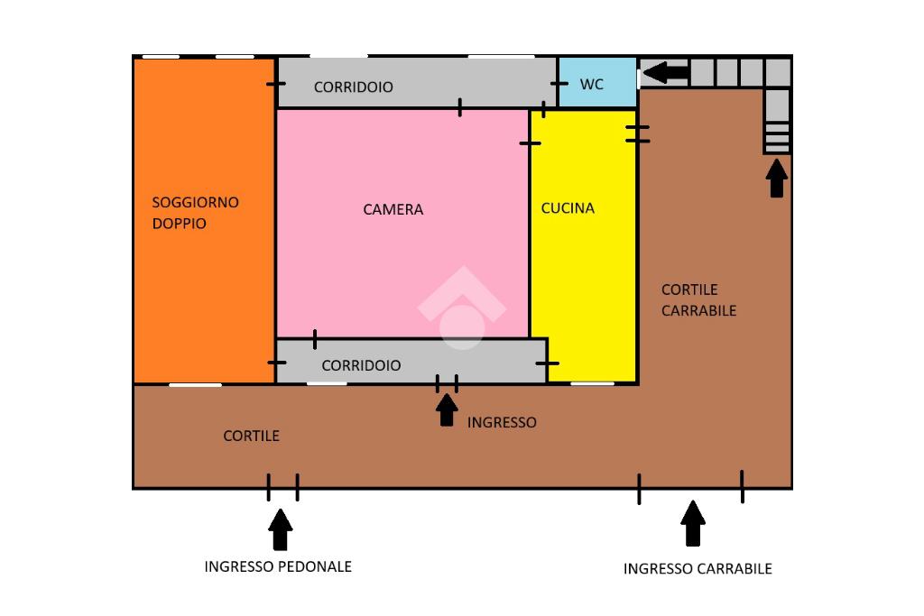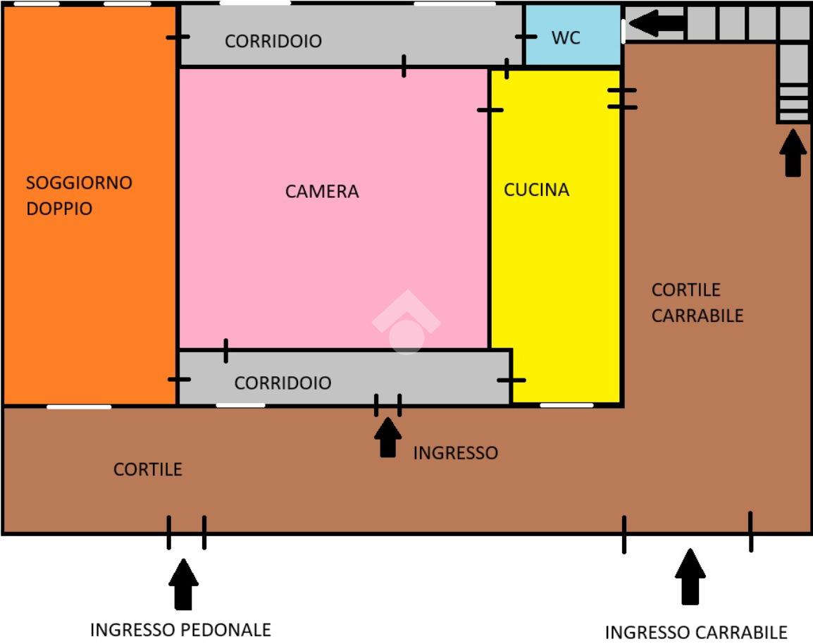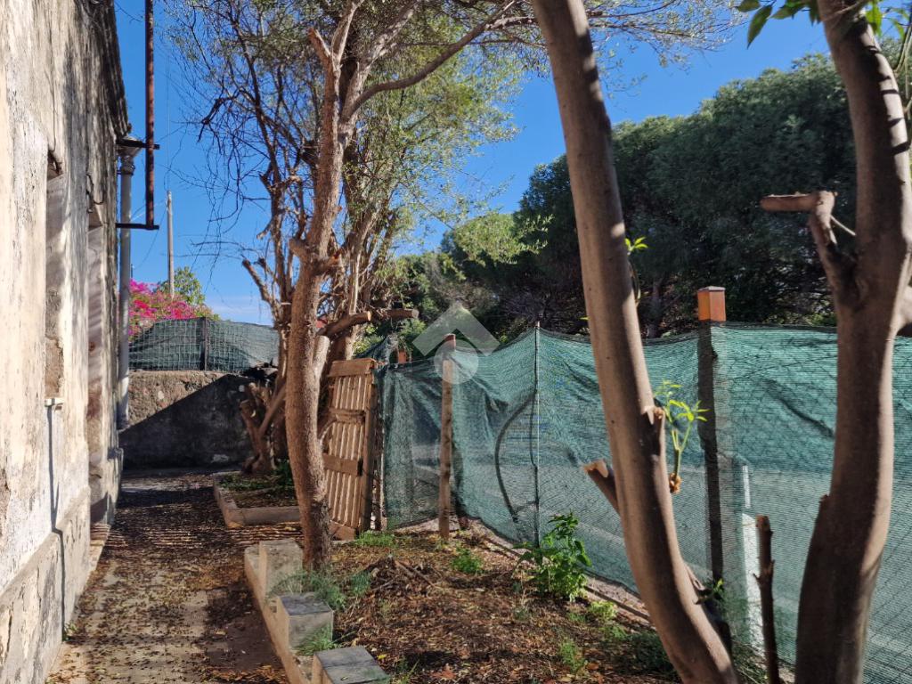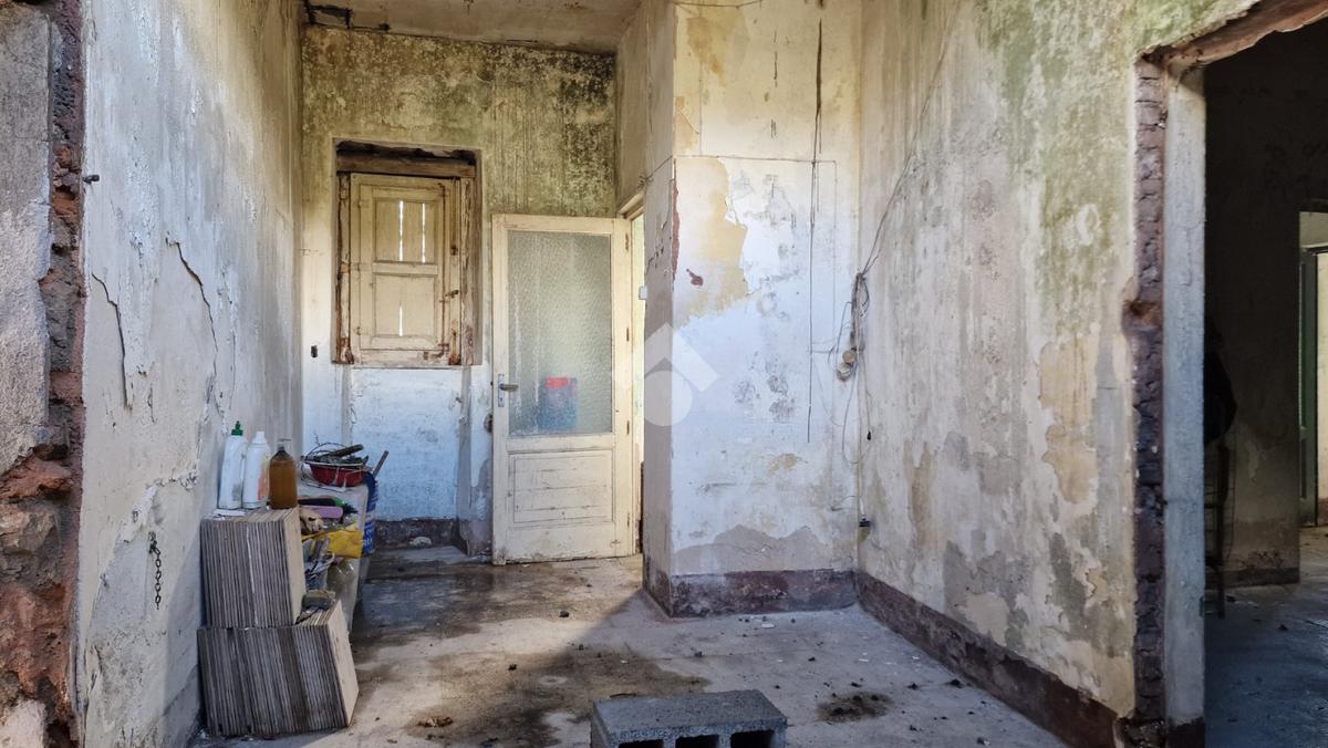 L'immobile: indipendente al piano terra edificata in data antecedente al 1967. L'ingresso è su cortile con possibilità di accesso carrabile con cancello da ricreare. Da questo si ha accesso all'interno di casa, interamente da ristrutturare, attualmente suddivisa con cucina soggiorno, due ulteriori ambienti ed il bagno. Sovrastante casa, la copertura a terrazza di mq 66 raggiungibile tramite scala ubicata in cortile con un ulteriore ambiente di mq 22 al piano primo accessibile dal terrazzo. Da ristrutturare interamente l'immobile, sia negli spazi interni che esterni. Da fare interamente gli impianti di acqua e luce, così come gli infissi in legno monovetro. Da rifare il terrazzo e le facciate. Da creare il muro di confine con la strada Nazionale di accesso all'immobile, attualmente delimitato con rete di confine.