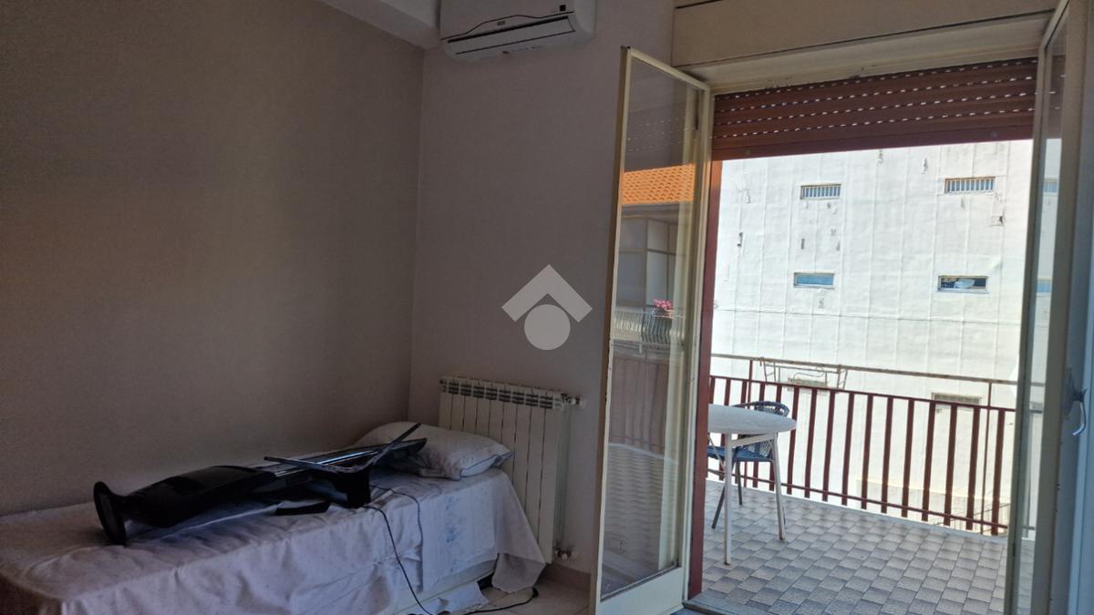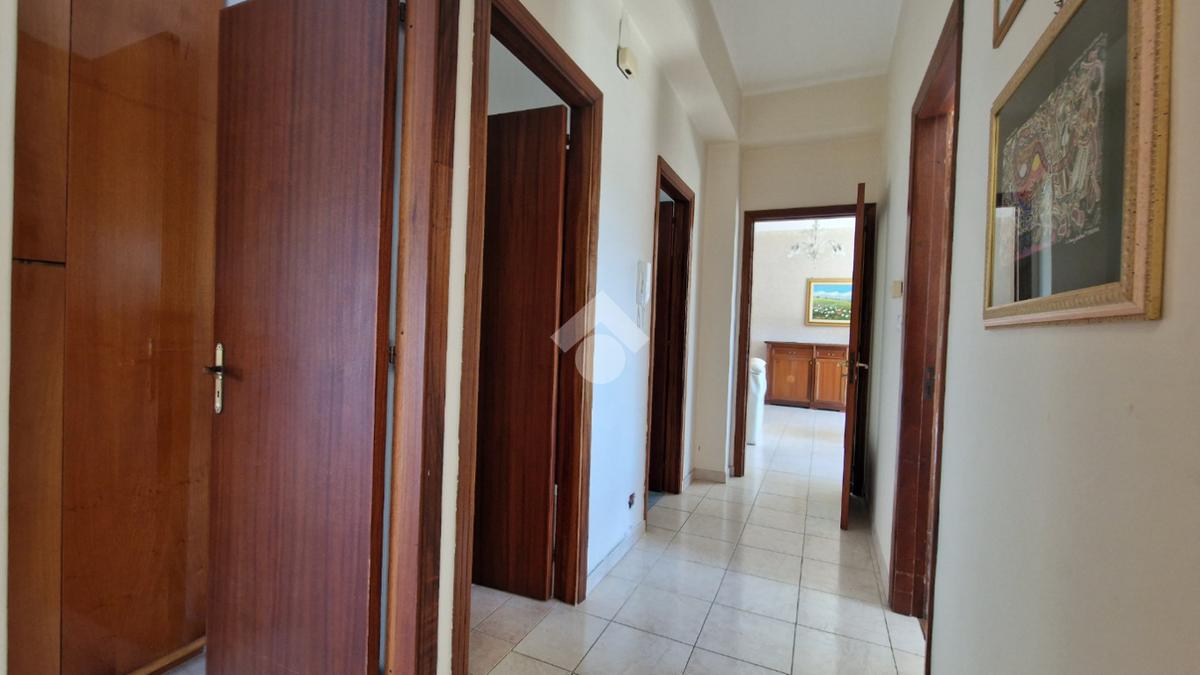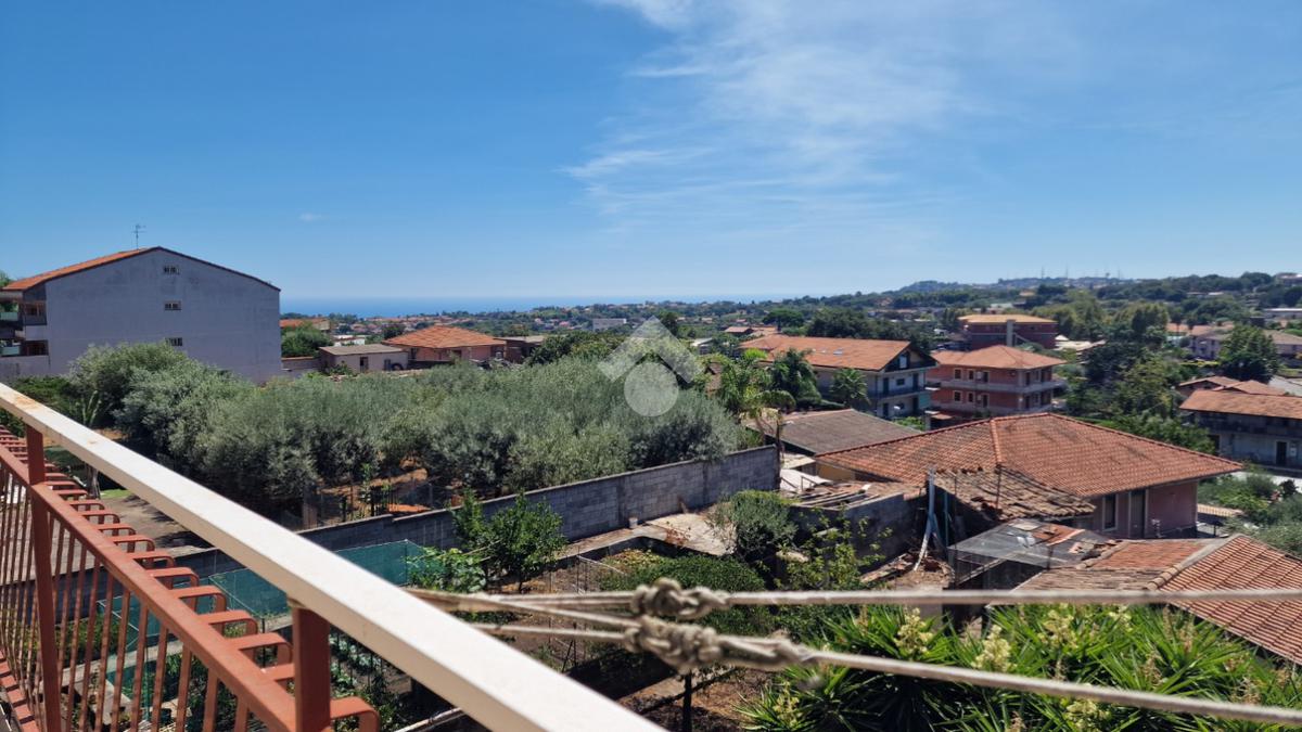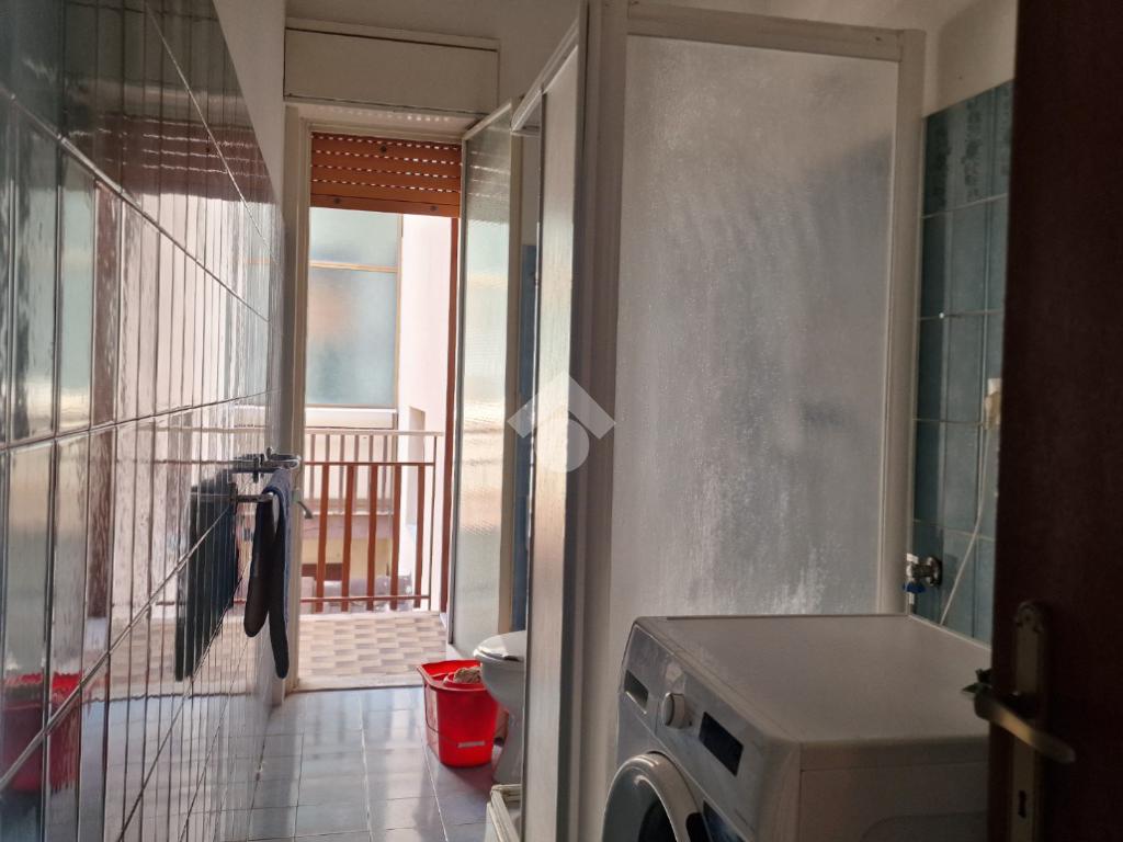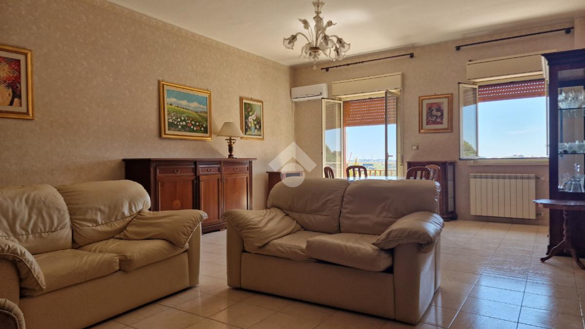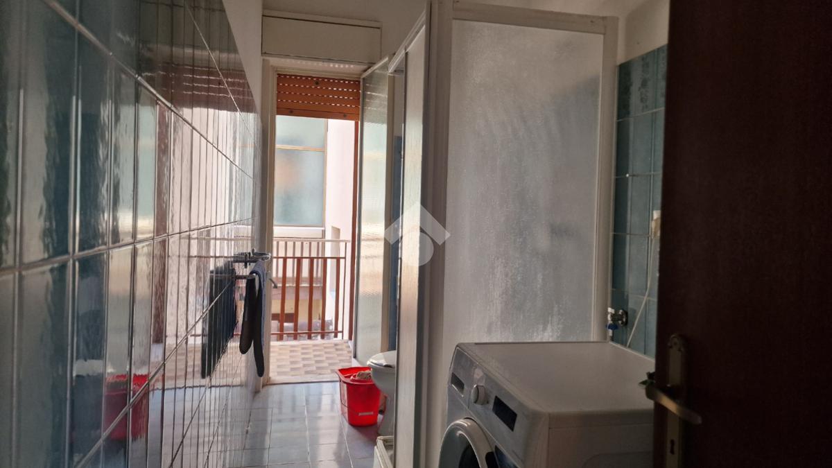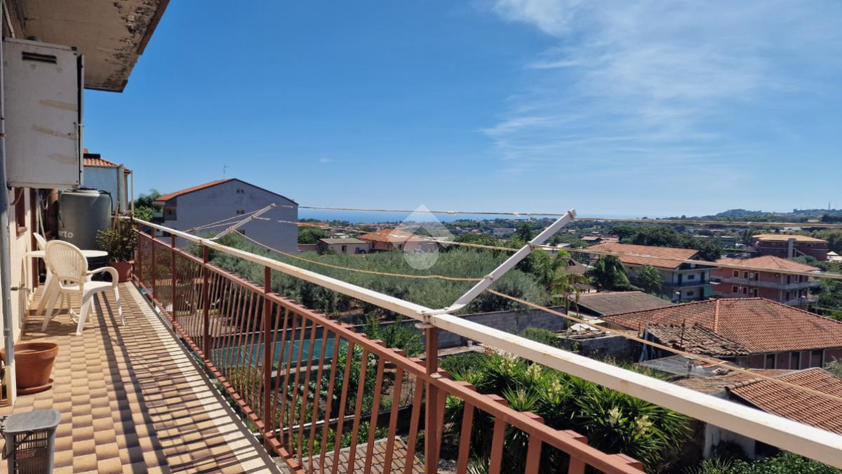 L'appartamento: Al primo piano senza ascensore della palazzina, con ingresso su ambiente che disimpegna una delle camerette e l'ampio soggiorno con doppia luce di cui una che permette l'accesso al balcone che attornia la casa. A seguire, il corridoio, la cucina che permette di realizzare un moderno open space con il soggiorno abbattendo la parete che divide i due ambienti, bagno, lavanderia con doppio servizio, una seconda cameretta e la camera matrimoniale. Tutti gli ambienti hanno uscita sul balcone a giro con una parte terrazzata ed una splendida vista libera sul mare. Buone le condizioni interne vista la ristrutturazione avvenuta nei primi anni 2000. Son cinque gli infissi in alluminio con doppi vetri camera e tre in ferro mono vetro. Rifatto l'impianto idrico mentre l'impianto elettrico è originario. Presente riscaldamento autonomo con piastre, da sostituire la caldaia. Presenti 3 climatizzatori e un box auto con saracinesca automatica a completare la vendita.