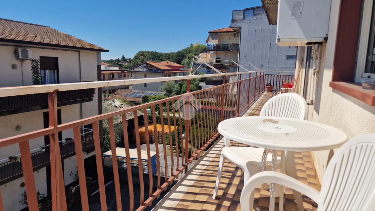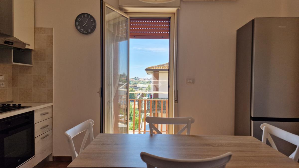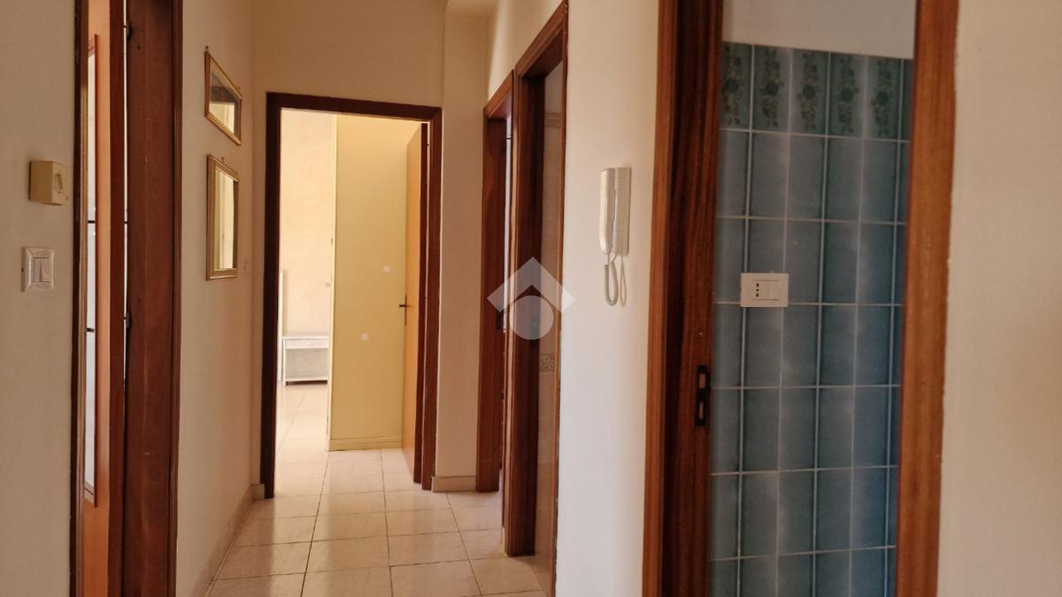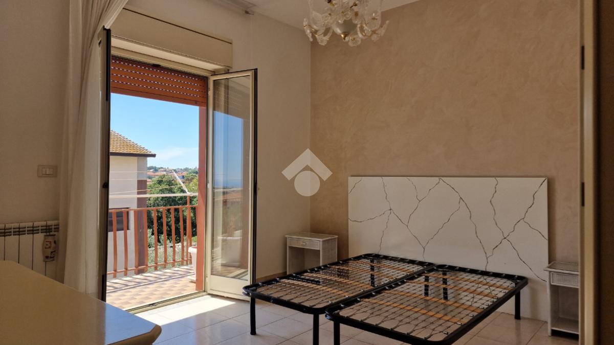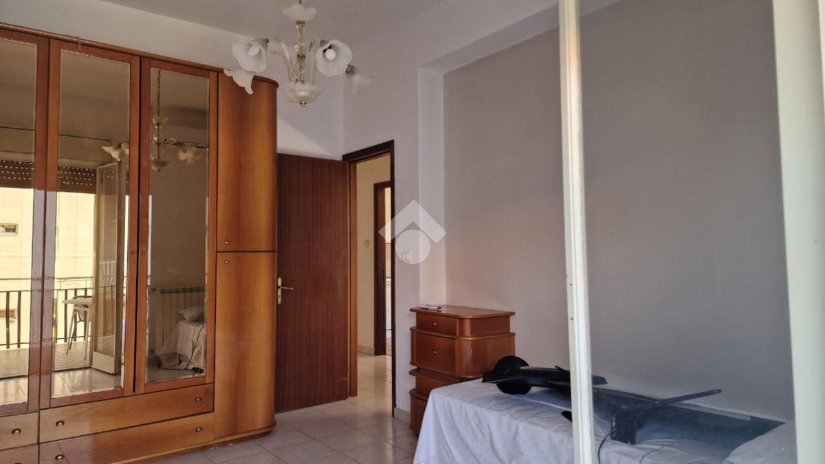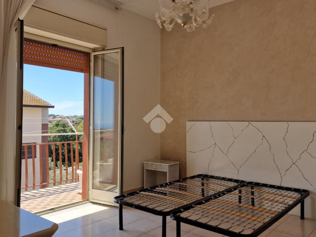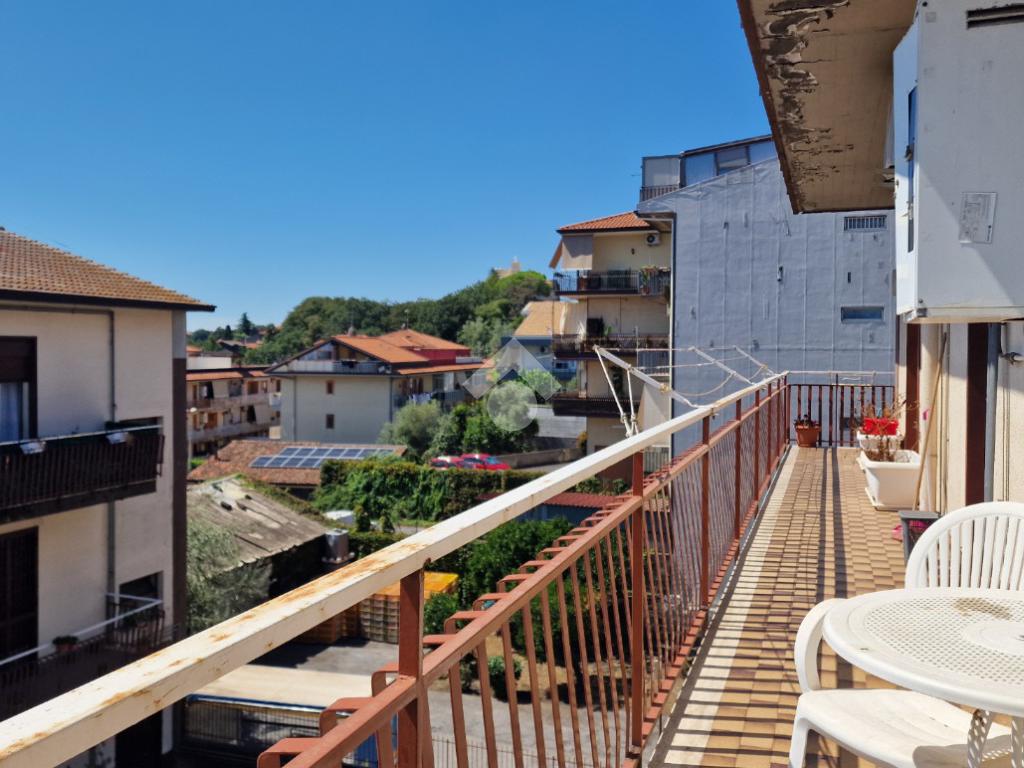 L'appartamento: Al primo piano senza ascensore della palazzina, con ingresso su ambiente che disimpegna una delle camerette e l'ampio soggiorno con doppia luce di cui una che permette l'accesso al balcone che attornia la casa. A seguire, il corridoio, la cucina che permette di realizzare un moderno open space con il soggiorno abbattendo la parete che divide i due ambienti, bagno, lavanderia con doppio servizio, una seconda cameretta e la camera matrimoniale. Tutti gli ambienti hanno uscita sul balcone a giro con una parte terrazzata ed una splendida vista libera sul mare. Buone le condizioni interne vista la ristrutturazione avvenuta nei primi anni 2000. Son cinque gli infissi in alluminio con doppi vetri camera e tre in ferro mono vetro. Rifatto l'impianto idrico mentre l'impianto elettrico è originario. Presente riscaldamento autonomo con piastre, da sostituire la caldaia. Presenti 3 climatizzatori e un box auto con saracinesca automatica a completare la vendita.