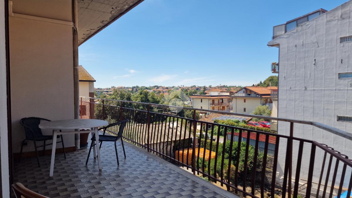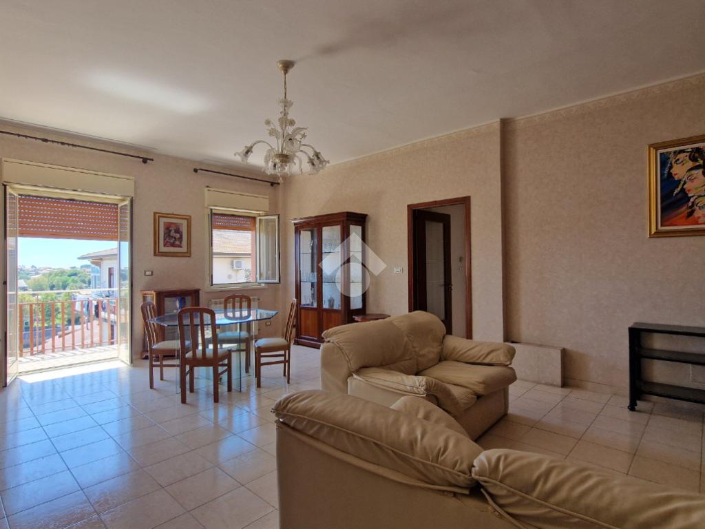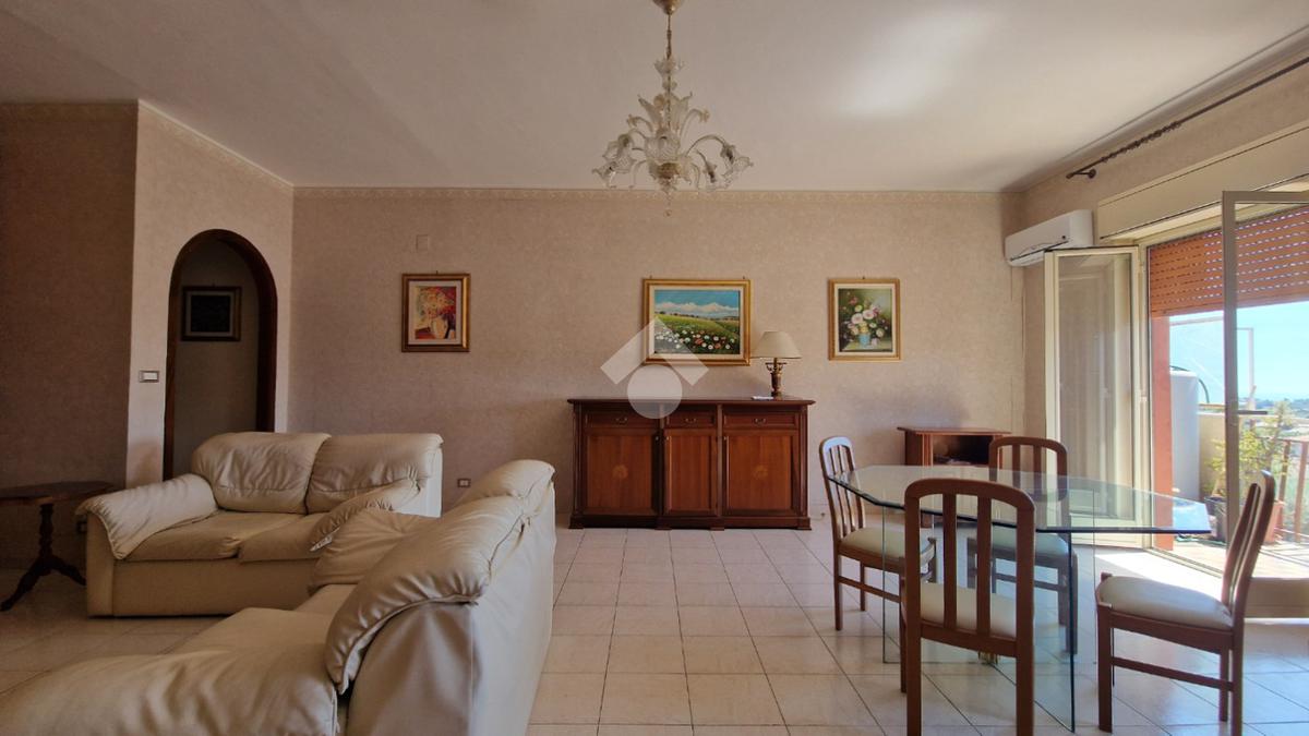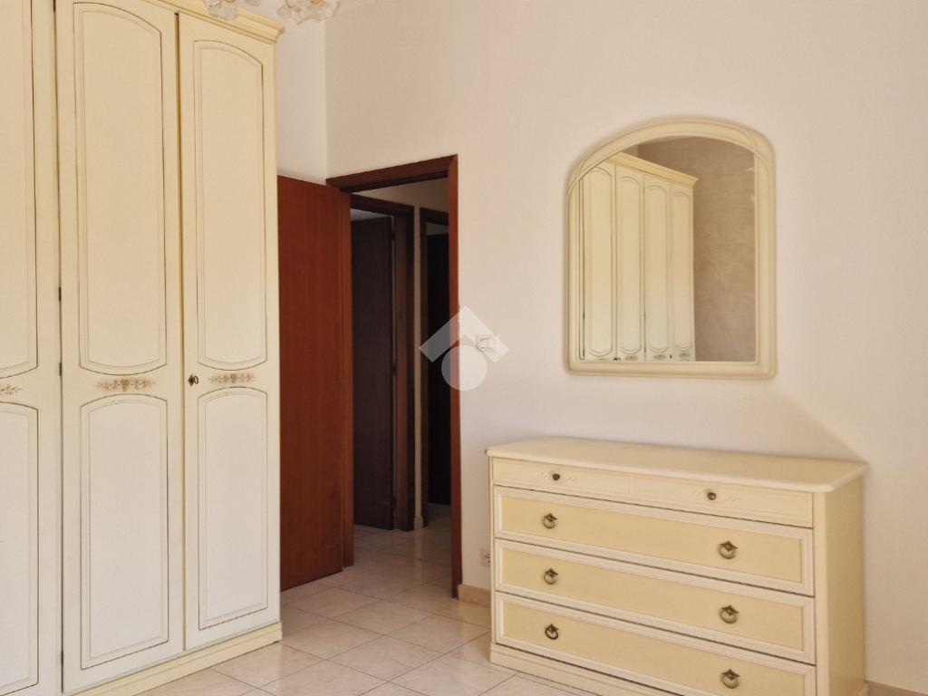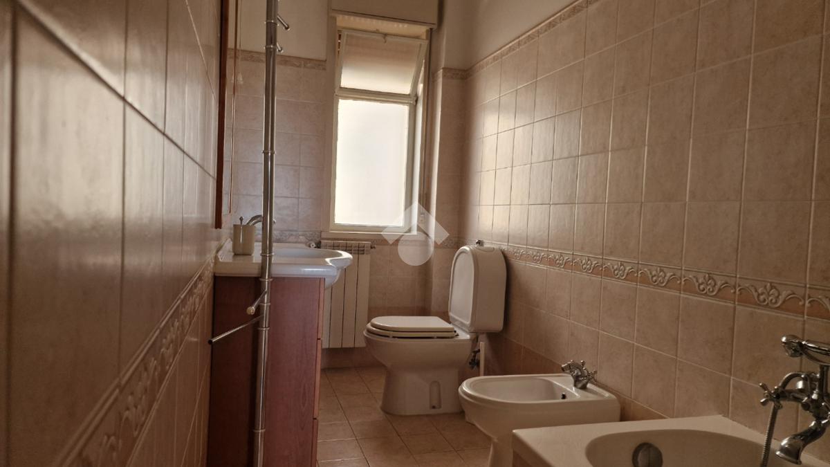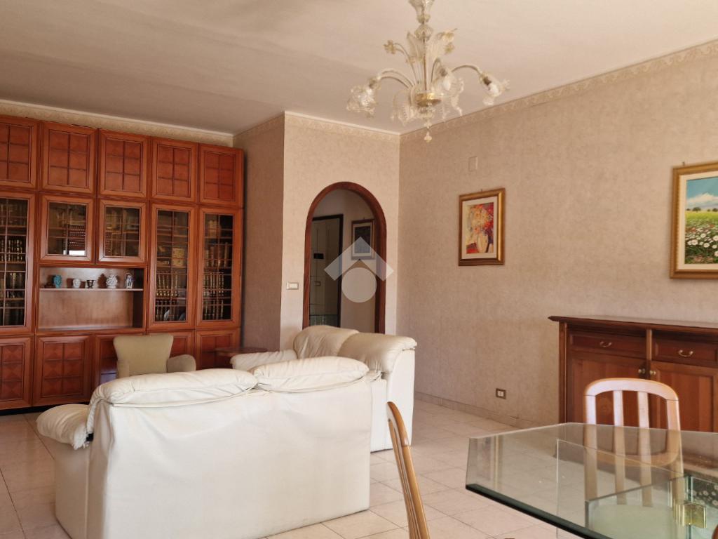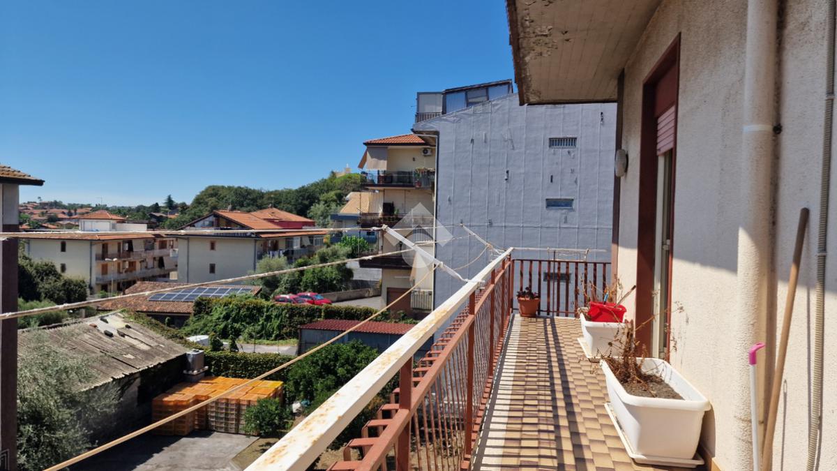 L'appartamento: Al primo piano senza ascensore della palazzina, con ingresso su ambiente che disimpegna una delle camerette e l'ampio soggiorno con doppia luce di cui una che permette l'accesso al balcone che attornia la casa. A seguire, il corridoio, la cucina che permette di realizzare un moderno open space con il soggiorno abbattendo la parete che divide i due ambienti, bagno, lavanderia con doppio servizio, una seconda cameretta e la camera matrimoniale. Tutti gli ambienti hanno uscita sul balcone a giro con una parte terrazzata ed una splendida vista libera sul mare. Buone le condizioni interne vista la ristrutturazione avvenuta nei primi anni 2000. Son cinque gli infissi in alluminio con doppi vetri camera e tre in ferro mono vetro. Rifatto l'impianto idrico mentre l'impianto elettrico è originario. Presente riscaldamento autonomo con piastre, da sostituire la caldaia. Presenti 3 climatizzatori e un box auto con saracinesca automatica a completare la vendita.