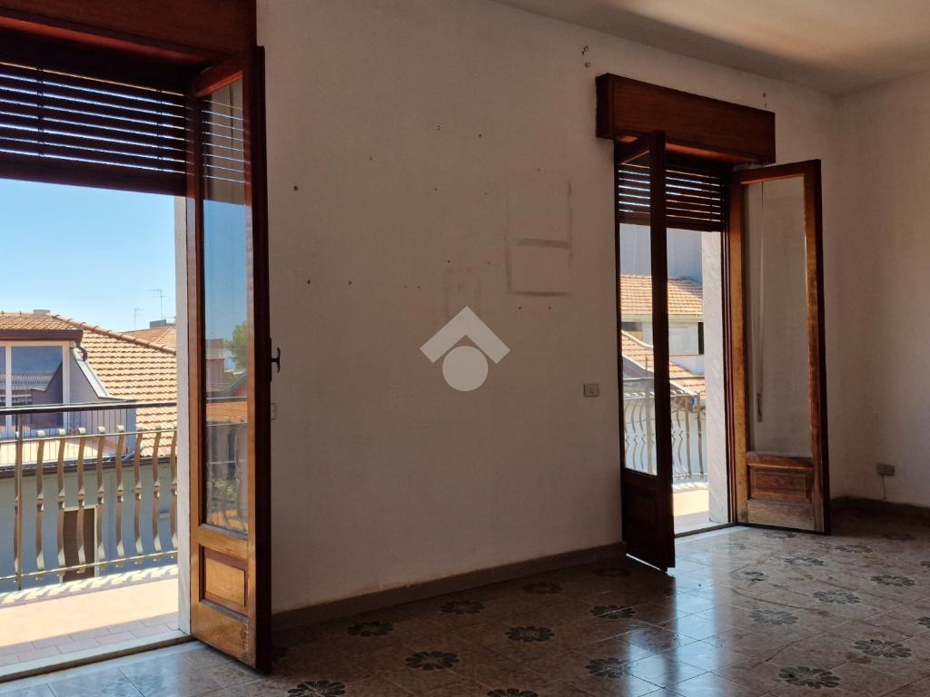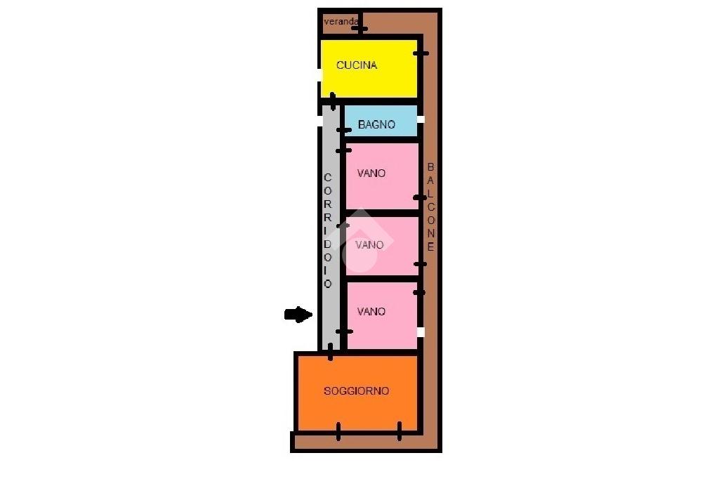L'appartamento: al secondo piano non ascensorato della palazzina, l'ingresso è su corridoio che disimpegna tutti gli ambienti di casa. Sono 5 i vani, tutti con uscita sul balcone a giro di mq 48 esposto su 3 lati, Nord, Est ed Ovest. La cucina, il bagno ed una veranda in balcone a completare gli spazi di casa. Compreso nella vendita un posto auto assegnato nel cortile condominiale accessibile da via Marco Polo, ed un serbatoio idrico che serve l'immobile. Le condizioni son da ristrutturare, gli impianti originari e quindi da rifare, gli infissi in legno monovetro e riscaldamento assente. Il balcone che attornia l'appartamento è stato interamente ristrutturato.