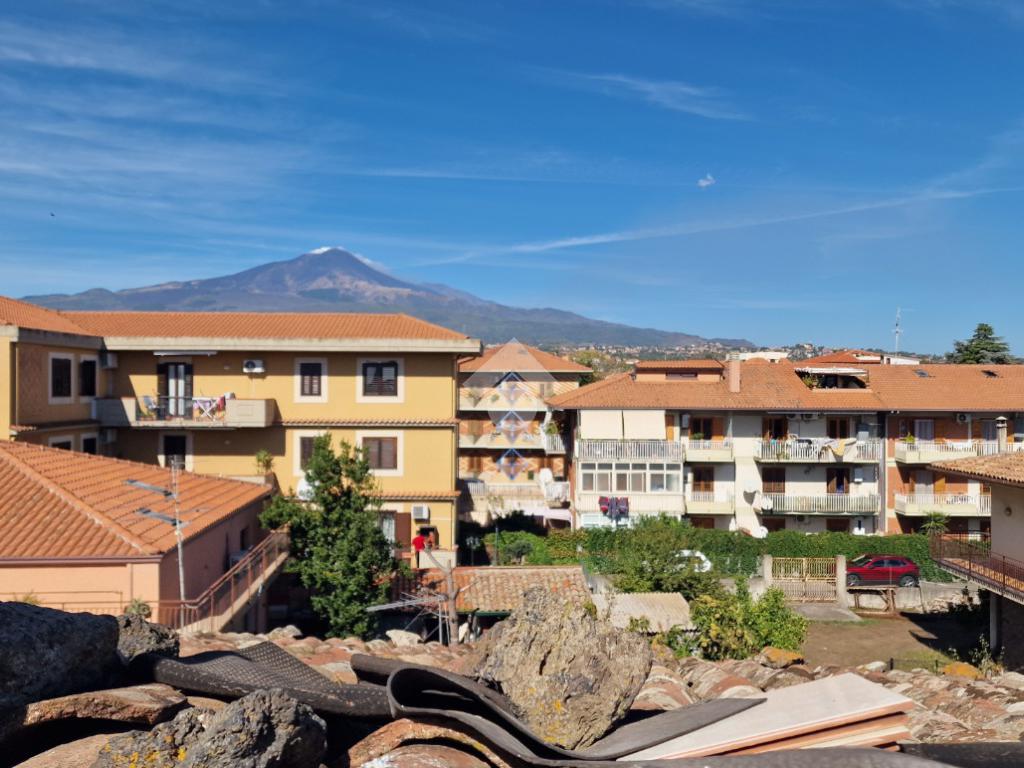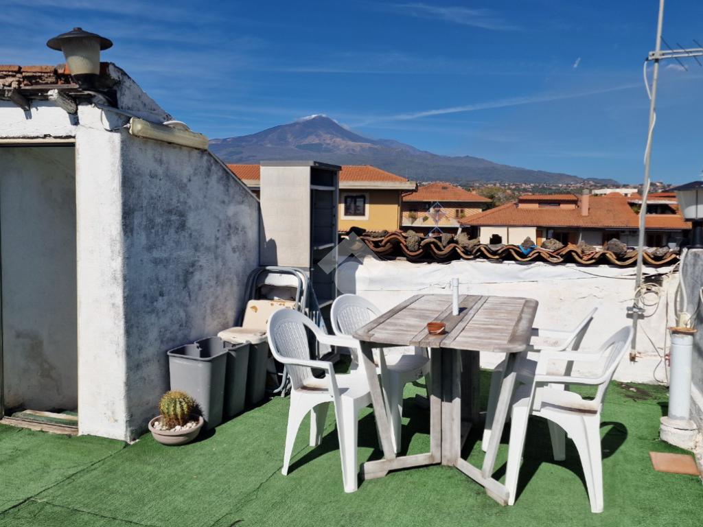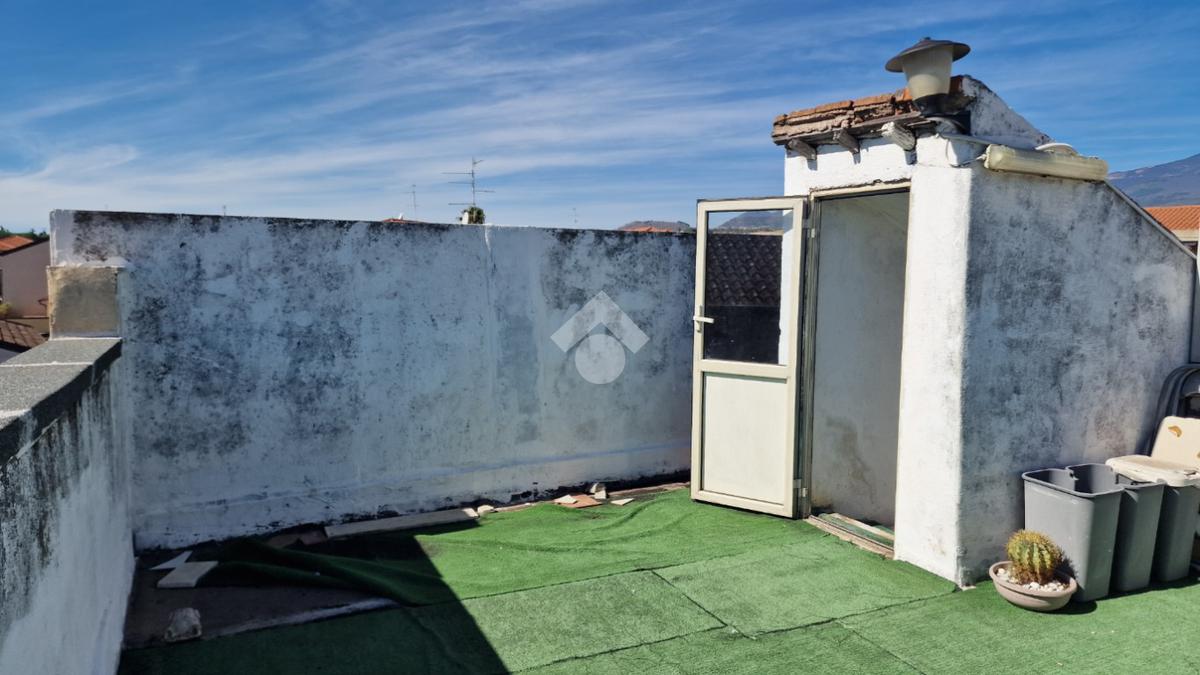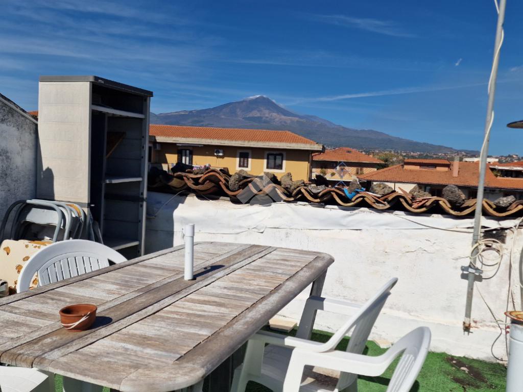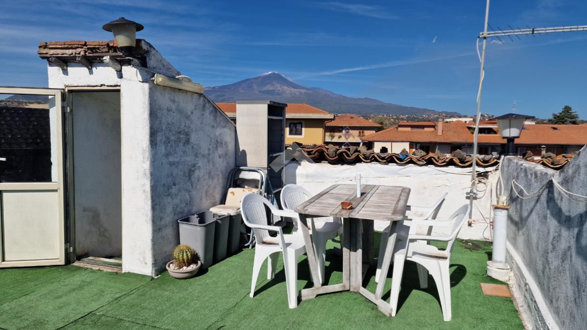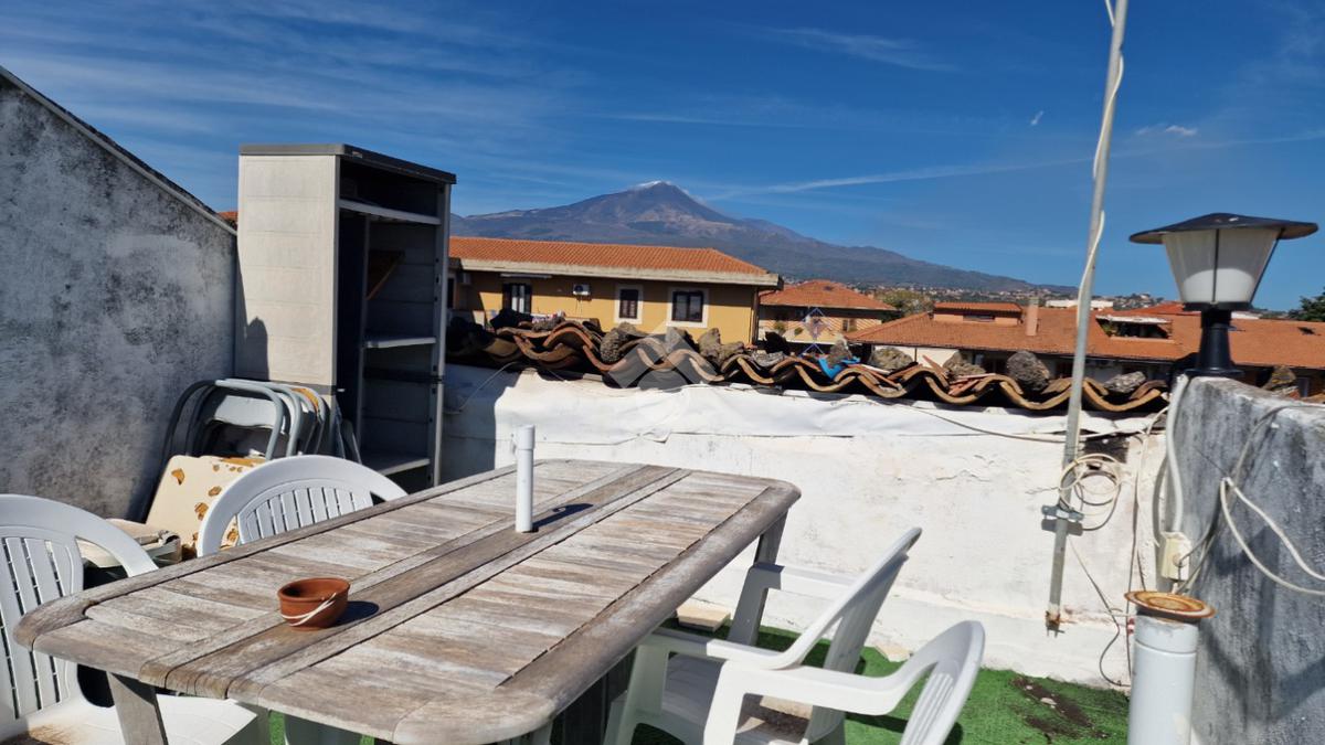 L'immobile: costruzione realizzata in data antecedente al 1967, semindipendente al primo piano con accesso privato al piano terra da via Idria. Scala di accesso al disimpegno collegato al bagno ed agli ambienti di casa. Da qui, si diparte la scala di accesso al terrazzo sovrastante con vista Etna. Son 3 i vani, tutti comodi e con tetti alti circa 4,00 m. A completare gli spazi interni, la cucina ed un ripostiglio accessibile dalla sala pranzo. Due i balconi, accessibili da ognuno dei vani di casa. Le condizioni esterne son buone vista la ristrutturazione dei prospetti avvenuta nel 2015. Gli interni son da rimodernare con infissi da ristrutturare, attualmente in legno mono vetro con doppi infissi in alluminio mono vetro, da rifare gli impianti elettrico ed idrico in quanto originari dell'epoca di costruzione, sostituiti i punti luce, assente il riscaldamento ma presenti stufa a legna e 2 climatizzatori. Compresa nella vendita autoclave con vasca da 1500 litri.