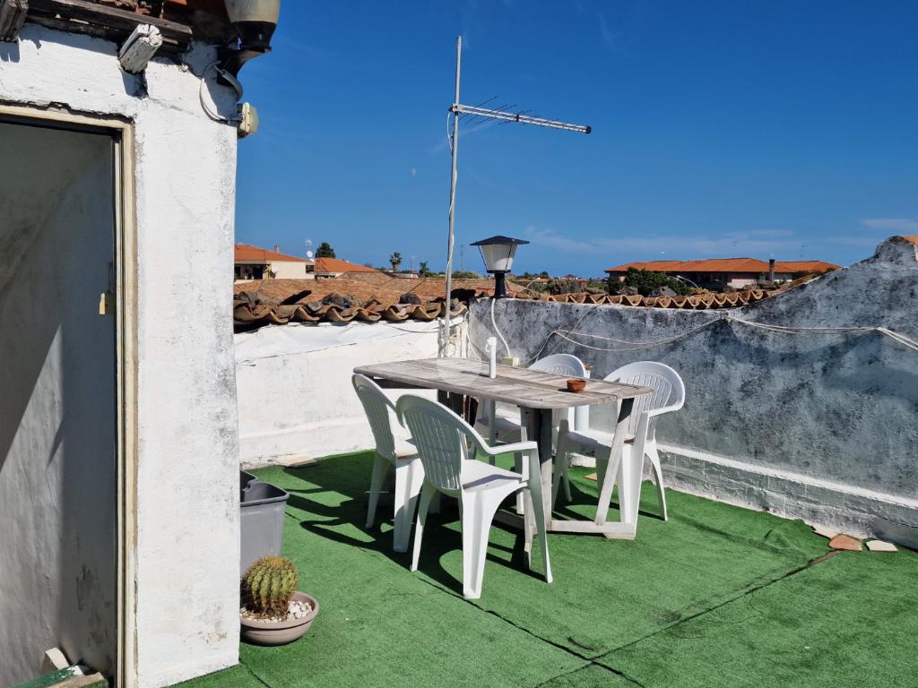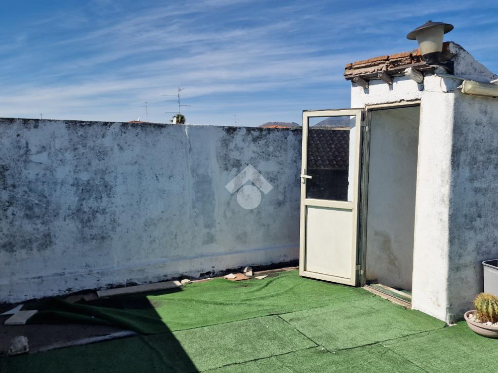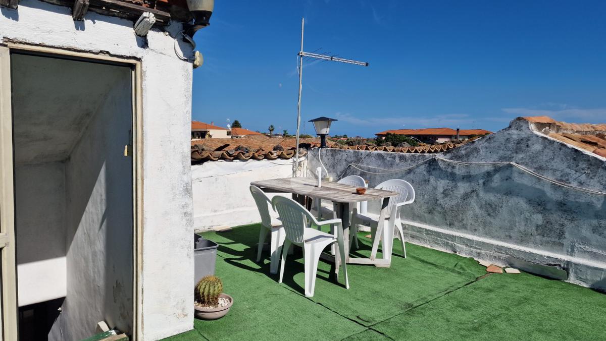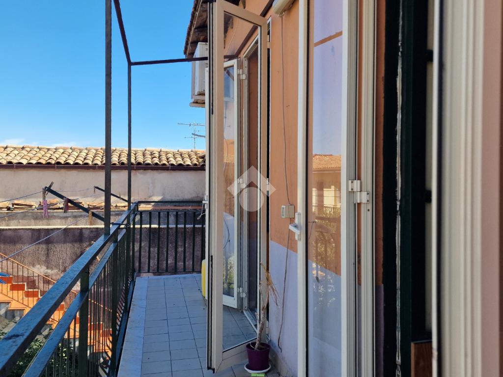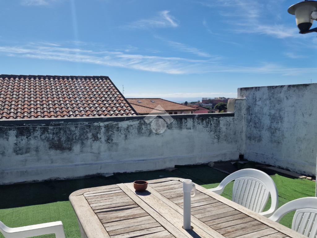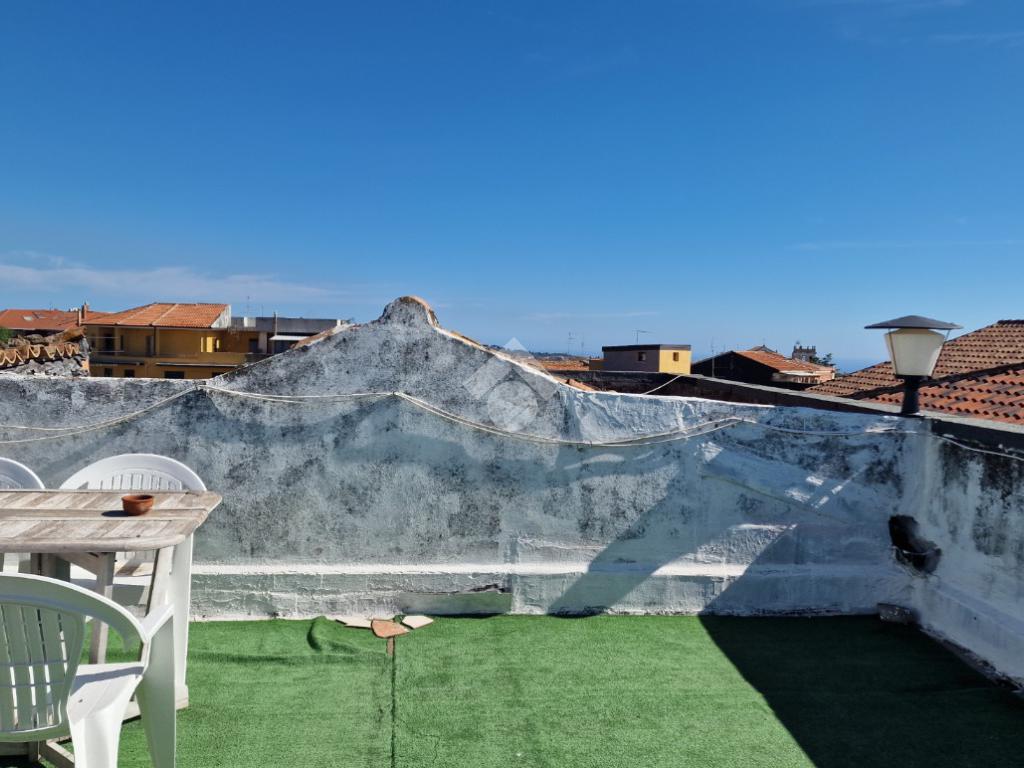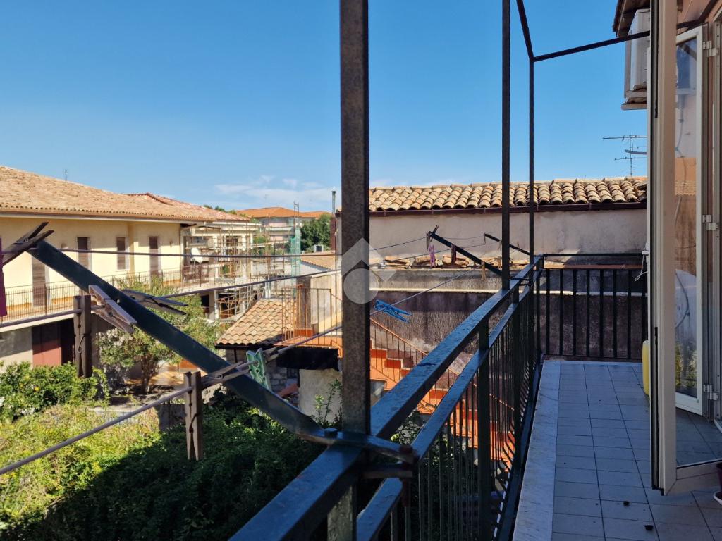 L'immobile: costruzione realizzata in data antecedente al 1967, semindipendente al primo piano con accesso privato al piano terra da via Idria. Scala di accesso al disimpegno collegato al bagno ed agli ambienti di casa. Da qui, si diparte la scala di accesso al terrazzo sovrastante con vista Etna. Son 3 i vani, tutti comodi e con tetti alti circa 4,00 m. A completare gli spazi interni, la cucina ed un ripostiglio accessibile dalla sala pranzo. Due i balconi, accessibili da ognuno dei vani di casa. Le condizioni esterne son buone vista la ristrutturazione dei prospetti avvenuta nel 2015. Gli interni son da rimodernare con infissi da ristrutturare, attualmente in legno mono vetro con doppi infissi in alluminio mono vetro, da rifare gli impianti elettrico ed idrico in quanto originari dell'epoca di costruzione, sostituiti i punti luce, assente il riscaldamento ma presenti stufa a legna e 2 climatizzatori. Compresa nella vendita autoclave con vasca da 1500 litri.
